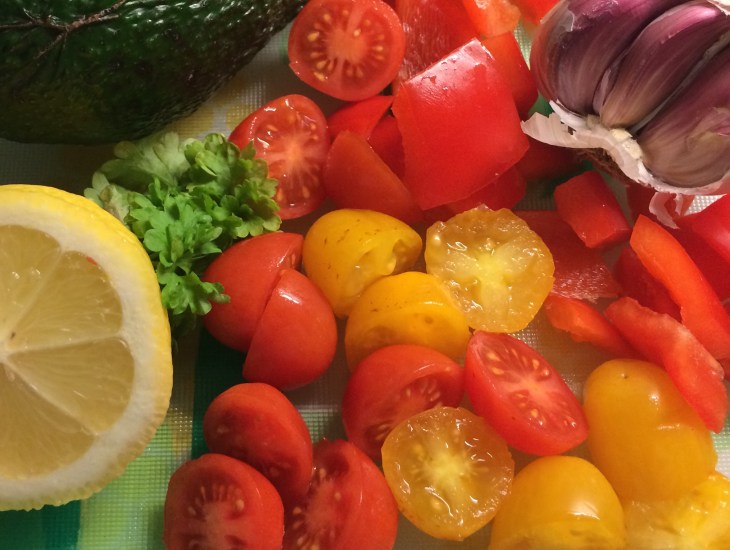12 cherry tomatoes – I use 6 red and 7 yellow Natoora tomatoes