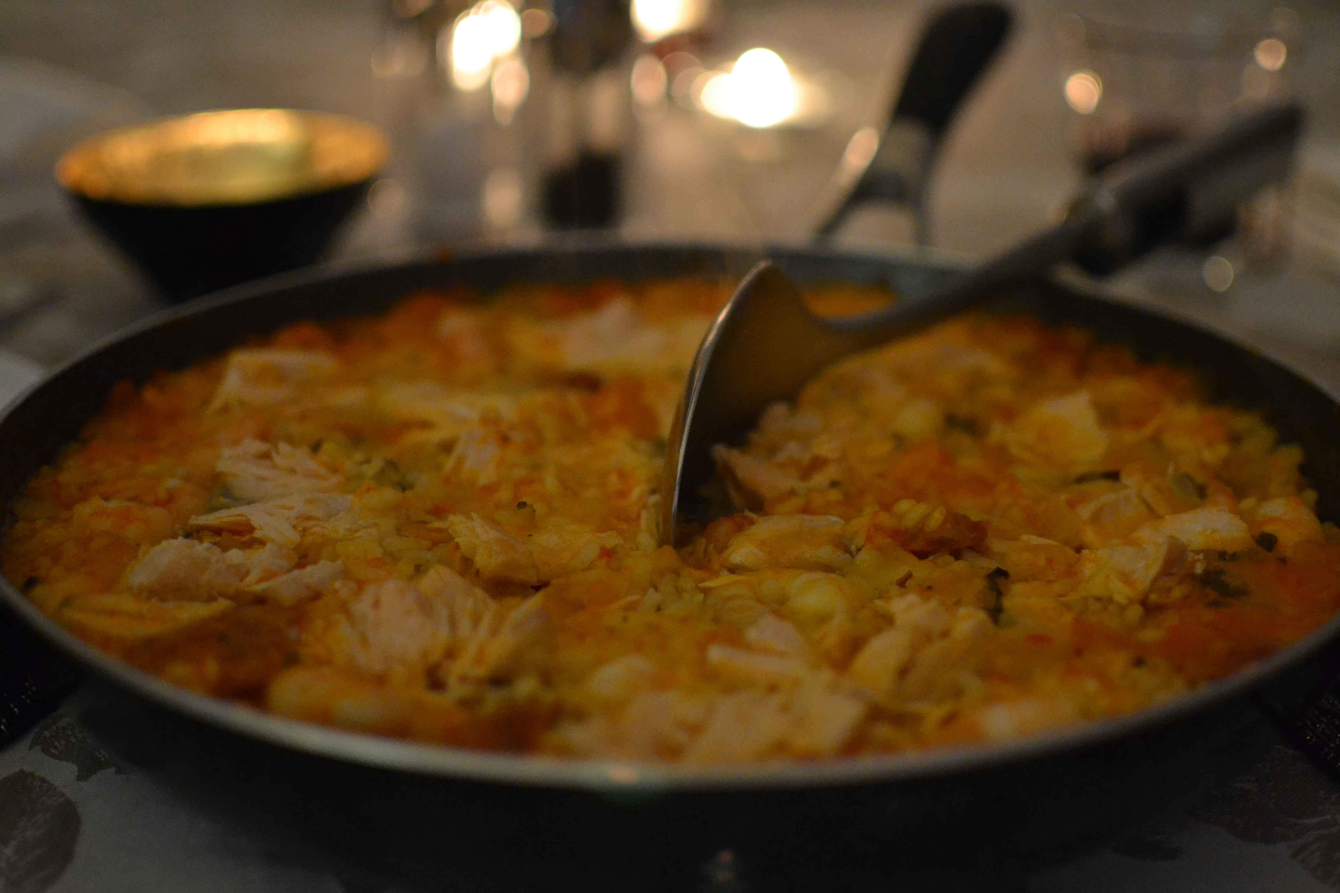 On Saturday, we had the same as last weekend: scallops and white pudding, paella (without chicken this time as I forgot to defrost it but I’m not sure anyone noticed).