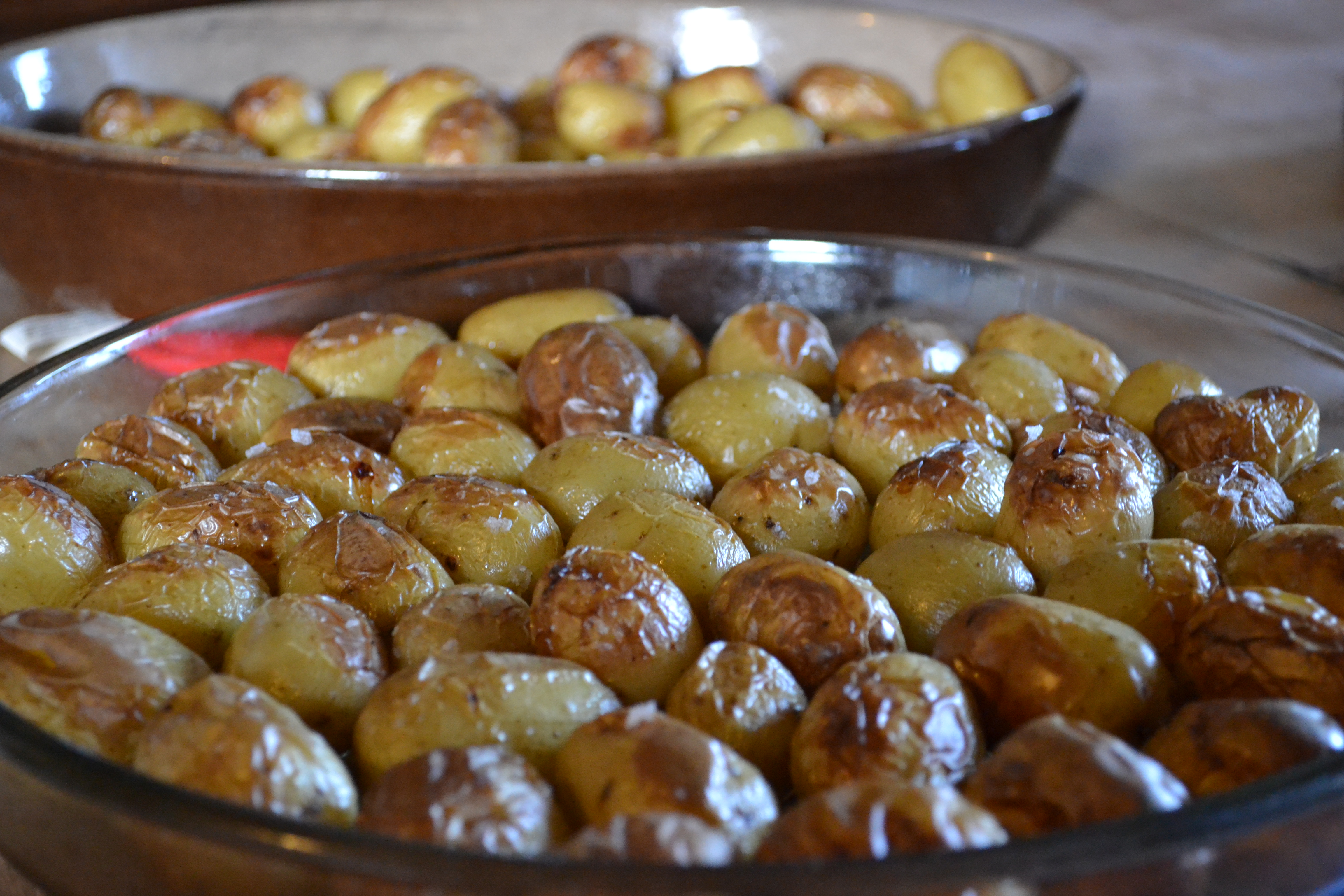 Turn the oven on to 200C. I like to roast new potatoes. It’s not roasting in the sense that you peel, par boil and so on, you just bake them in their skin with some olive oil and seasoning. They turn out sweet and soft. Put them in a baking dish and drizzle over olive oil and crush over some sea salt. Shake them around to make sure they’re evenly seasoned. Take your head of garlic and with a very sharp knife, cut the top off so that the cloves are exposed. Cover the exposed heads with olive oil and wrap the head in tin foil. Place it in the middle of the potatoes. Roast for 30 minutes then check the garlic. If it’s soft, take it out, if not, leave in until done – it should have a mashable consistency. Cook the potatoes until they are tender. It’ll depend on their size – just keep pricking them to check. When done, cover and set aside.
