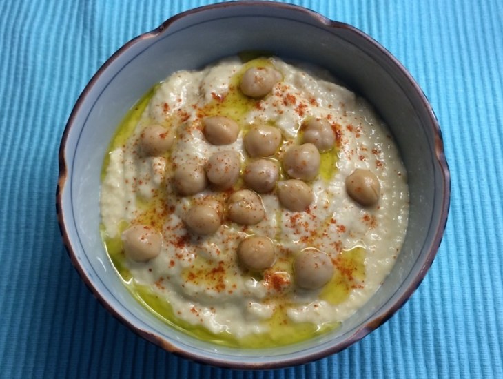 Drizzle with some more extra virgin olive oil and decorate with a few whole chickpeas and paprika.