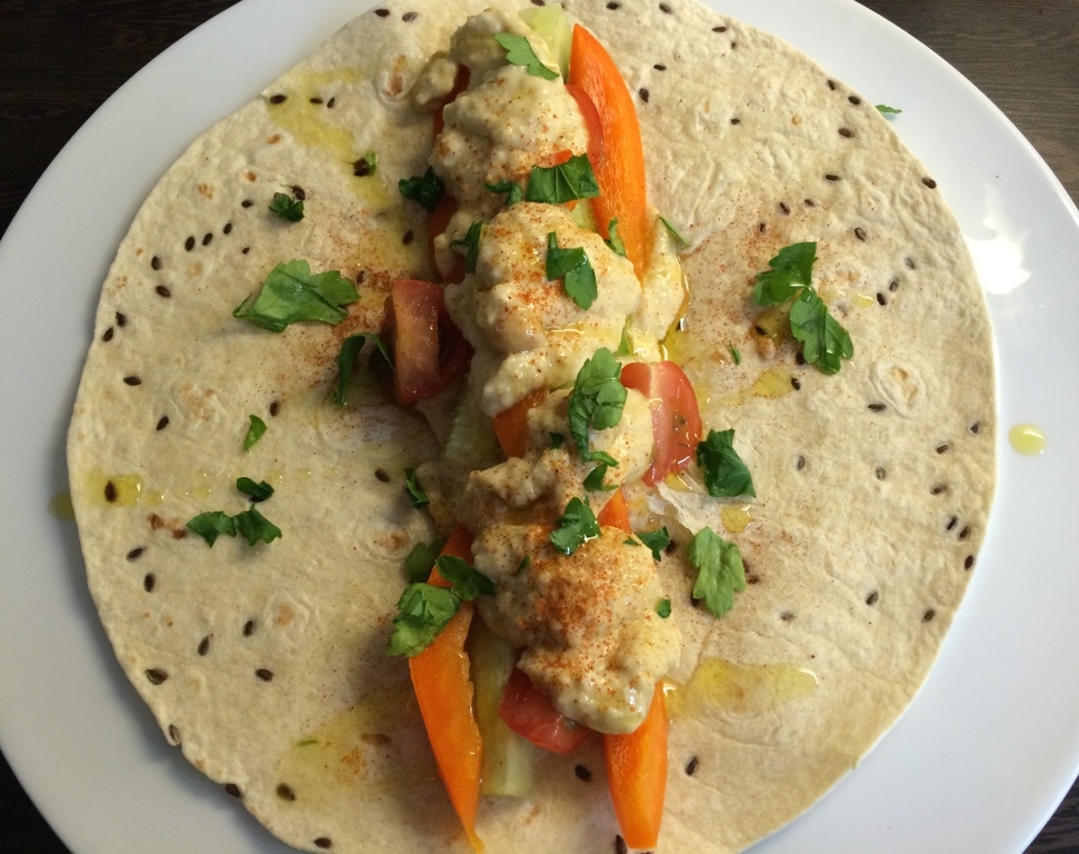I ate (some of) the hummus in a wrap with cucumber, pepper and tomatoes.