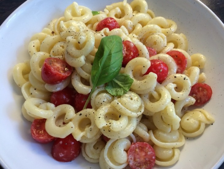 The easiest pasta ever, I think. One that you could easily make with time to spare between the men’s semi finals today. Come on Andy!