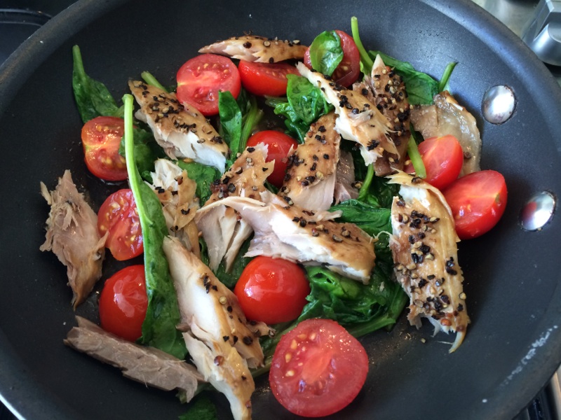 Cleanse day one: so far so good, however, I have been feeling the effects of yesterday’s excursion so tomorrow will be more telling. This is a cleanse-friendly mix of eggs, fish, tomatoes and spinach. I have a feeling that frittatas will feature heavily over the next couple of weeks. I did miss the cheese a bit, but if seasoned well, it’s still really good. You don’t need to add more pepper if using peppered mackerel.