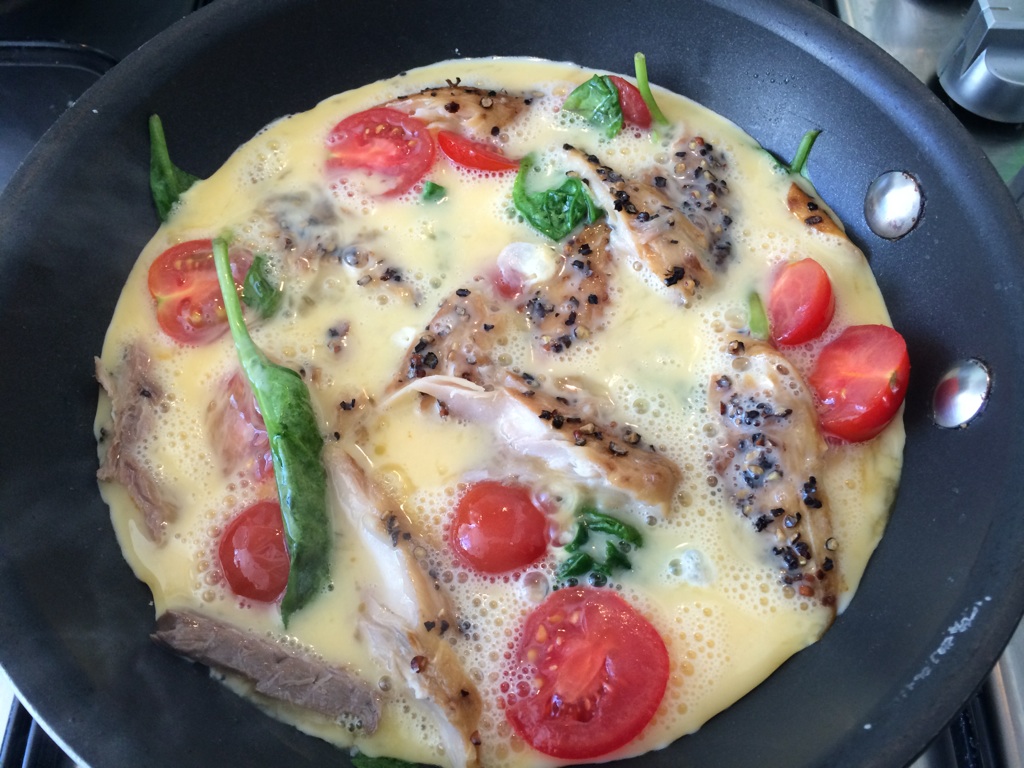 Add to the pan. Cover with your beaten eggs. Season well.