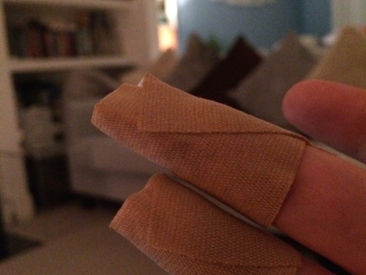 I put my fingers under the faucet and let the cold water rinse away the blood. And rinse. And rinse. And, a bit more rinsing. Hand is getting a bit cold. Oh, there’s more blood than water now, that’s odd. What… exactly have I done? Woah. This is actually quite painful. Shit. Can’t actually see the end of that finger. Just a lot of blood. Its more orange than you’d think. Right. It’s not stopping. Let’s put a little tissue on there… Gosh, the blood’s gone right through that tissue. Kitchen roll. Let’s try kitchen roll. Heart’s pounding a bit now. Calm down. It’s fiiiine. If your heart beats hard it’ll just make it worse. Breeeeathe. Blood’s soaked through the kitchen roll too now. That’s ok. More kitchen roll. Double kitchen roll. Heart’s still pounding. Need to calm down. Breathe… Let me tap into my first aid knowledge and work out the best thing to do in this situation. Tap tap tap. Ah. I have no first aid knowledge. Did I read something about holding your hand above your head in case of mandolin accidents? I think I did. Let’s try that… Pound pound pound. How did I manage to get blood all over this kitchen? Gross. I’ll wipe that up with my left hand while my right hand waves around up there fixing itself. Wipe wipe wipe. Ok let’s check these fingers, should be mended by now… Shit, this blood is never ending… I still can’t see the end of that finger. There will come a point soon when this kitchen will be full of (orangey) red blood and I will be a bloodless shrivelled dead person lying in a pool of it if I don’t stop this bleeding. Will you though? Let’s Google it. Finger wounds are extremely common… blah blah blah… But if it doesn’t stop bleeding within 10 minutes, go to A&E. It’s been 9 minutes. A&E. I’ll go to A&E. How? Can’t drive one-handed. UBER! Uber. Right. But I’m already wearing my pajamas. What? Why? It’s only 7pm?! Yes but it’s winter and it’s Sunday! Well, does it matter that you’re wearing pajamas? Do you want to stop your own life from ebbing away or do you want to look decent for the knackered doctors and nurses at A&E who won’t even notice?! I want to look decent. Ok fine! Let’s super-bandage this up so we don’t drip blood through the entire house (I am actually talking to myself aloud at this stage). Triple kitchen roll and a tea towel. Upstairs we go, one-handedly get undressed, one-handedly get re-dressed. It’s indredibly hard – not just the one-handedness of it but trying not to touch/knock the painful wounds. Five minutes later I’m done and ready to call a taxi to go to… where’s the nearest A&E? No idea… Gah. Google again. Hang on, let me just check how bad it is now… Ah… aaaaaaahhhhhhh… it’s stopped.